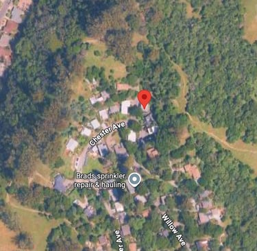 The property consists of two parcels that have been merged together, located on Upper Ridgeway Ave. (adjacent to 2 Upper Ridgeway Ave.); the joined parcel numbers are APN Nos. 001-193-07 & 001-193-09. They now constitute one parcel totaling 16,416.0541 sq. ft. / 0.3769 acres. The property owner is also the owner of another vacant lot, APN No. 001-193-03 in the same vicinity (7680.5507 sq. ft. / 0.1763 acres). These properties, in excess of half an acre, are adjacent to and provide the community access to Hawthorn Canyon Open Space and also serve as a wildlife corridor.